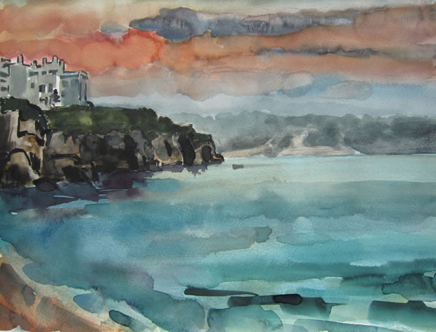 Soir à La Escala 32 cm x 41 cm aquarelle