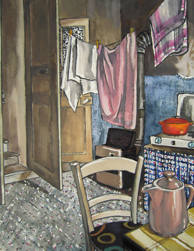 Les Caillons, moment béni du café 24 cm x 32 cm aquarelle