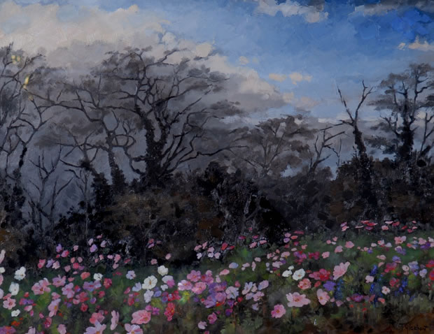 jachère fleurie, Nièvre 65 cm x 50 cm Huile sur papier marouflé sur bois
