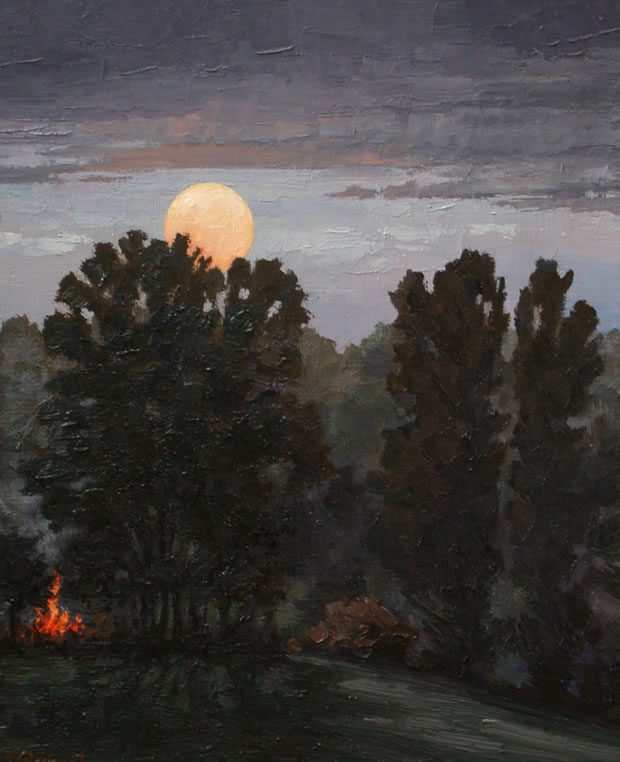 Lever de lune à Saint-Amand-des-Hautes-Terres 3 F Huile sur toile