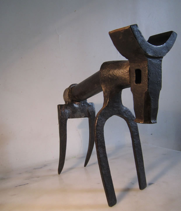 Quadrupède H 40 cm x L 40 cm Fer ou fonte, socle en chêne